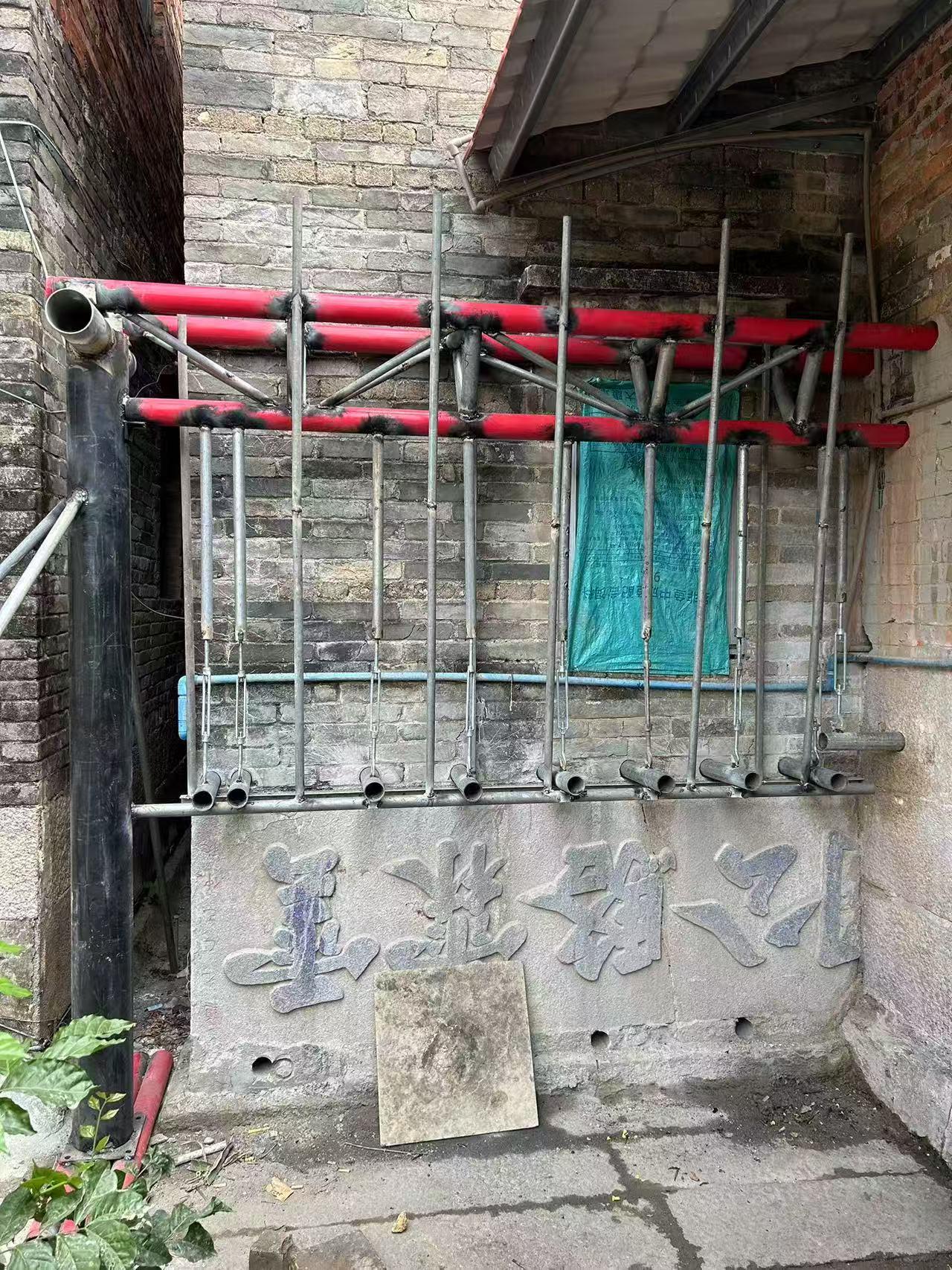 工作小组随即赶到现场查看,发现确有一块如老人们所言的石匾嵌于墙中。但如何将之取出,却令大家却犯了愁。因为要在墙脚挖出石匾,势必会造成对墙体的破坏,可能给房屋造成安全隐患,甚至倒塌。