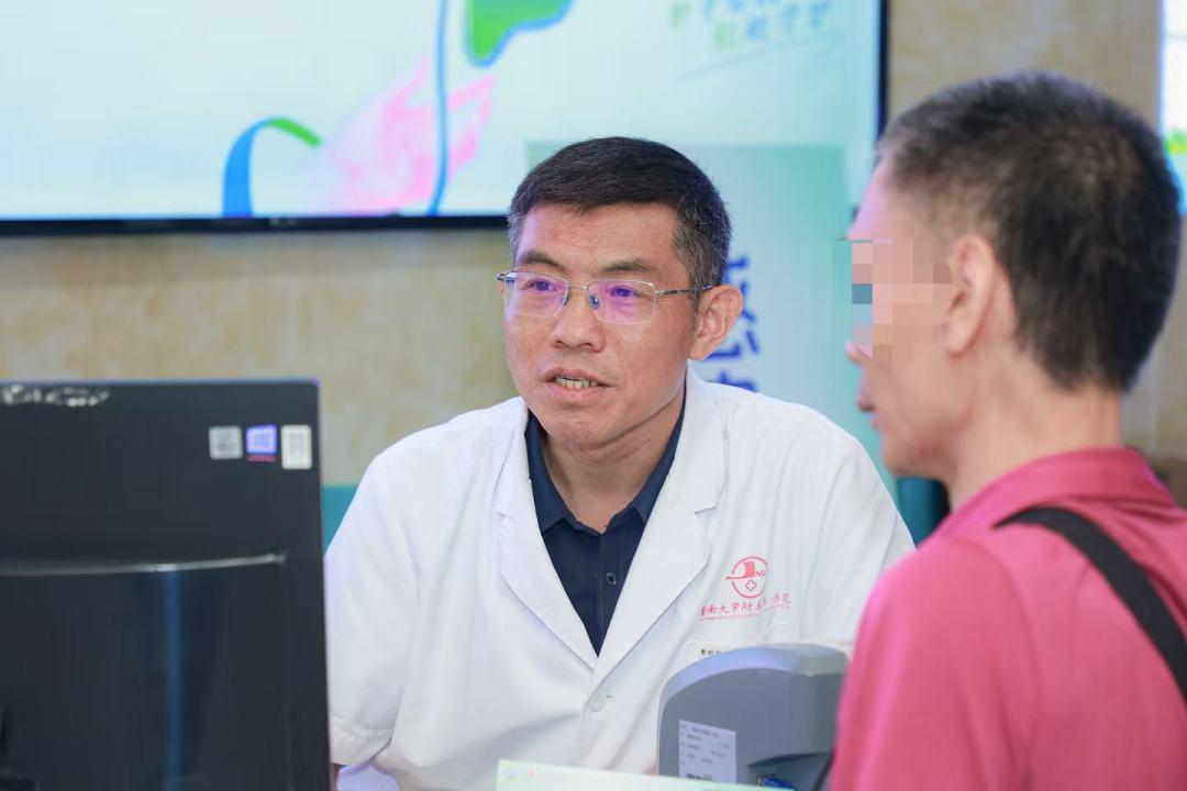 曹明溶教授和肝癌患者交流诊治方案。