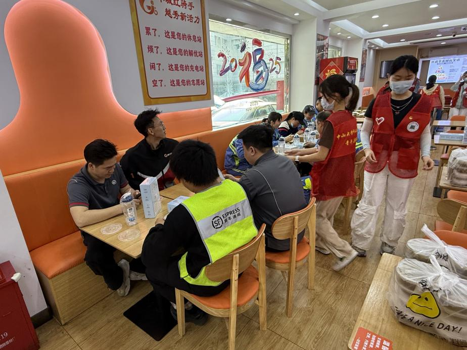 百余份温凉适口的糖水,连同六榕街道党工委统筹辖区资源、联动社区爱心党员特别购置的挂脖风扇、运动水杯等“清凉礼包”,由中山医学院青年志愿者们逐一送到新业态、新就业群体手中,在给他们送去关怀关爱的同时,切实增强党在新兴领域的号召力、凝聚力和影响力。