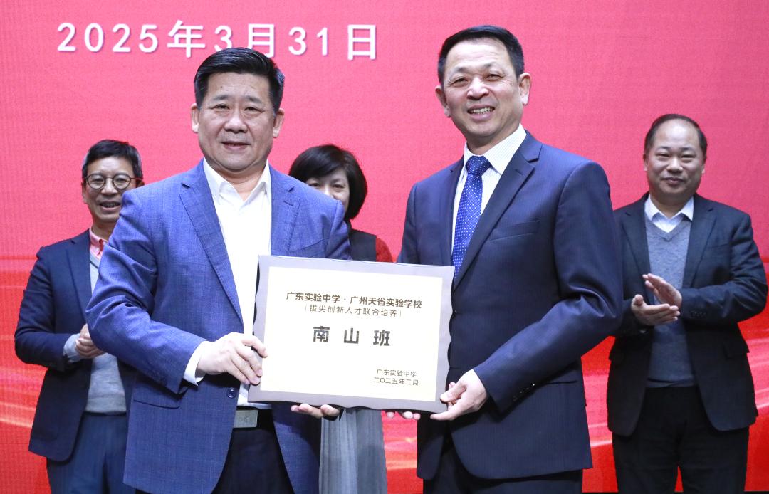 启动仪式上,省实向天省授予了“南山班联合培养”牌匾。据介绍,天省是“省实联盟”的核心成员校,两校以教育初心为纽带,坚持通过校际合作协同发展。自2005年开启办学合作以来,省实与天省秉持“为了每一个学生的发展”理念,进行资源共享、共研共建课程资源、师资交流互动、学生培养互助。