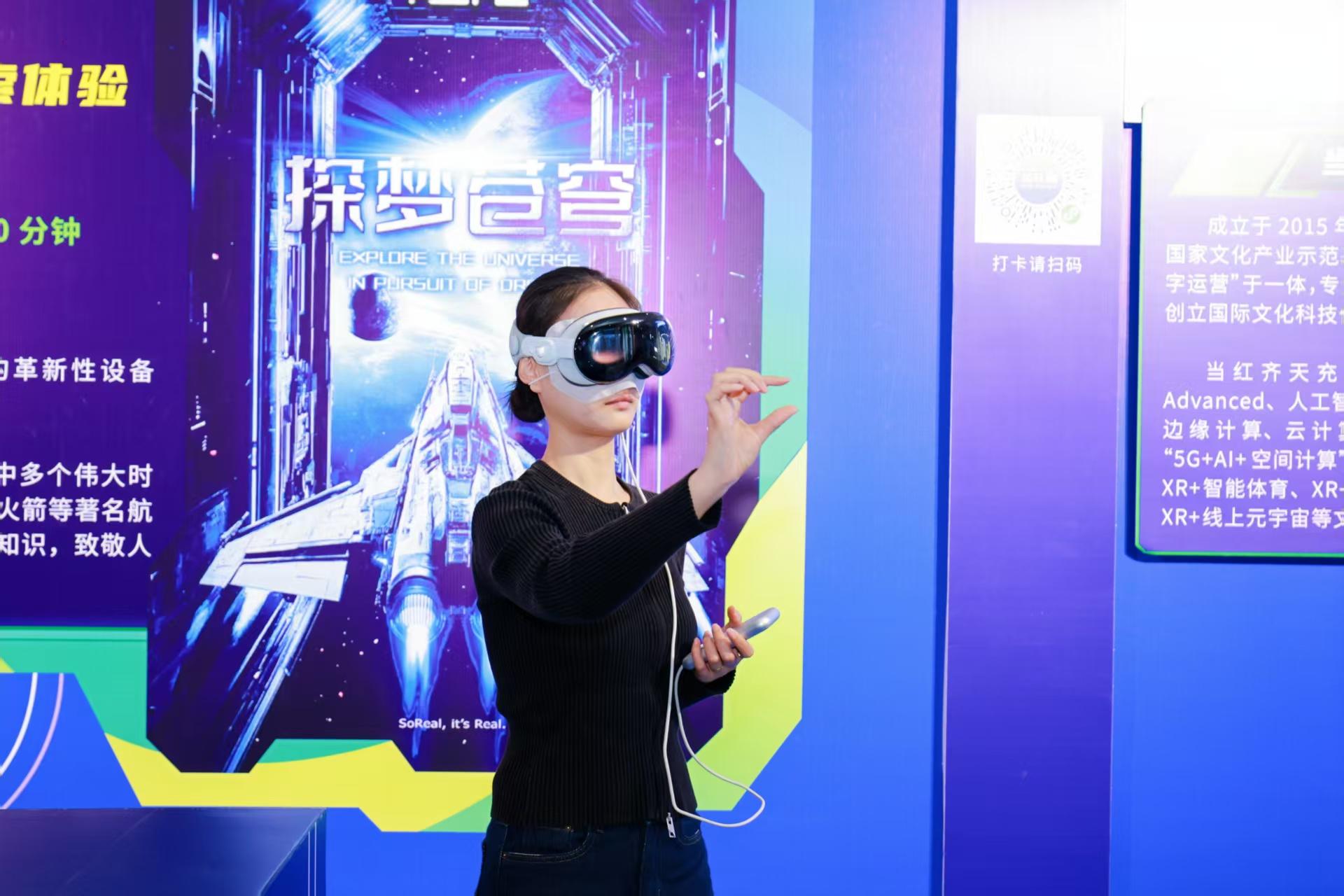 活动期间,与会嘉宾登上“旅游新供给号时光列车”,沉浸式体验智慧景区、科技演艺等五大主题展区,26家企业通过互动装置、实景演示展现创新成果。在“非遗梦站”,活字印刷与甲骨文解码让千年文化触手可及,肇庆四会古法造纸技艺升级为“粤路纸”文创品牌。“智在云天站”依托VR技术,带领观众穿越《山海经》神话世界。“太空中心站”以1:1天宫空间站模型和AR技术,构建未来科技与传统文化交融的沉浸空间。科技秀场更是亮点纷呈:深圳大漠大智控的500架无人机编队以“文旅”二字点缀广州塔上空;亿航智能载人飞行器完成低空观光飞行演示;优链时代3D数字人技术实现“5分钟生成元宇宙分身”,为景区虚拟代言人提供技术支撑。