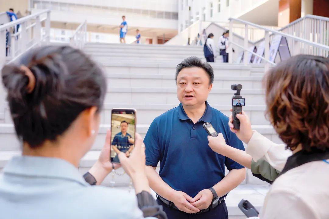 (港中大(深圳)明德高中党支部书记、校长鲁江接受记者采访)