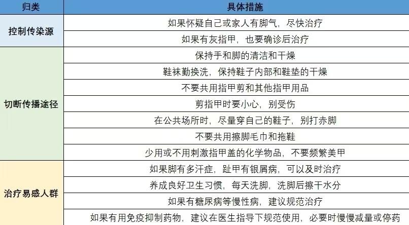 预防灰指甲,还可参考下列表格汇总的建议,帮助我们远离灰指甲烦恼。