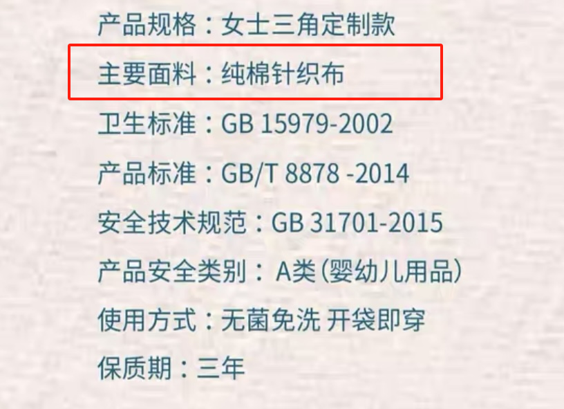总结一下:好的一次性内裤,包装上一定会同时标注“卫生标准”和“安全技术类别”。很多三无产品是没有这两个标准的,有些产品可能只标注了一个,不要选!