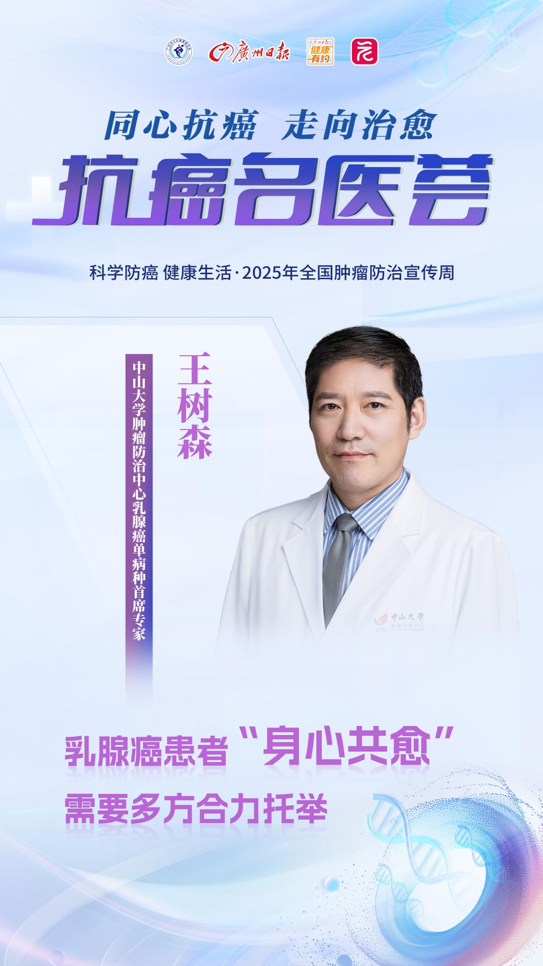 在2025年全国肿瘤防治宣传周到来之际,著名乳腺癌治疗专家、中山大学肿瘤防治中心乳腺癌单病种首席专家王树森教授就乳腺癌患者心理健康和HER2 阳性乳腺癌靶向治疗等问题接受广州日报健康有约的采访。