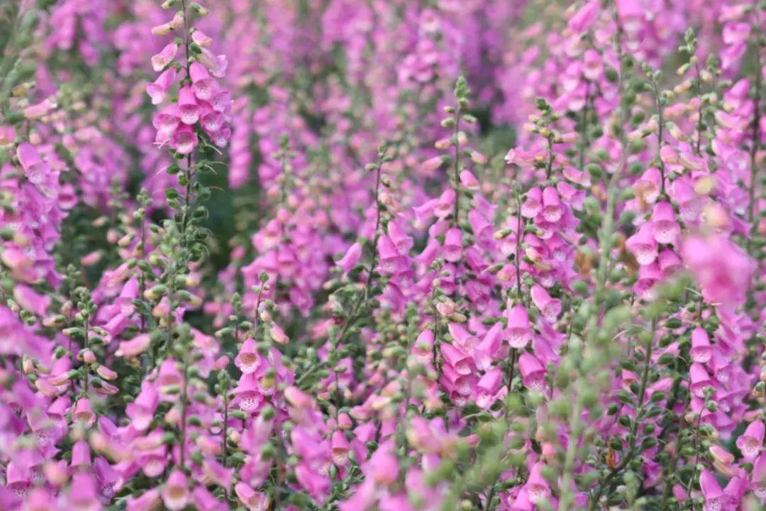 走进二沙岛宏城公园,一片明亮耀眼的花海令人赏心悦目,连片种植的花卉区里,成串成长的毛地黄花朵高大挺拔,肉眼可见的渐变花色,清新优雅。