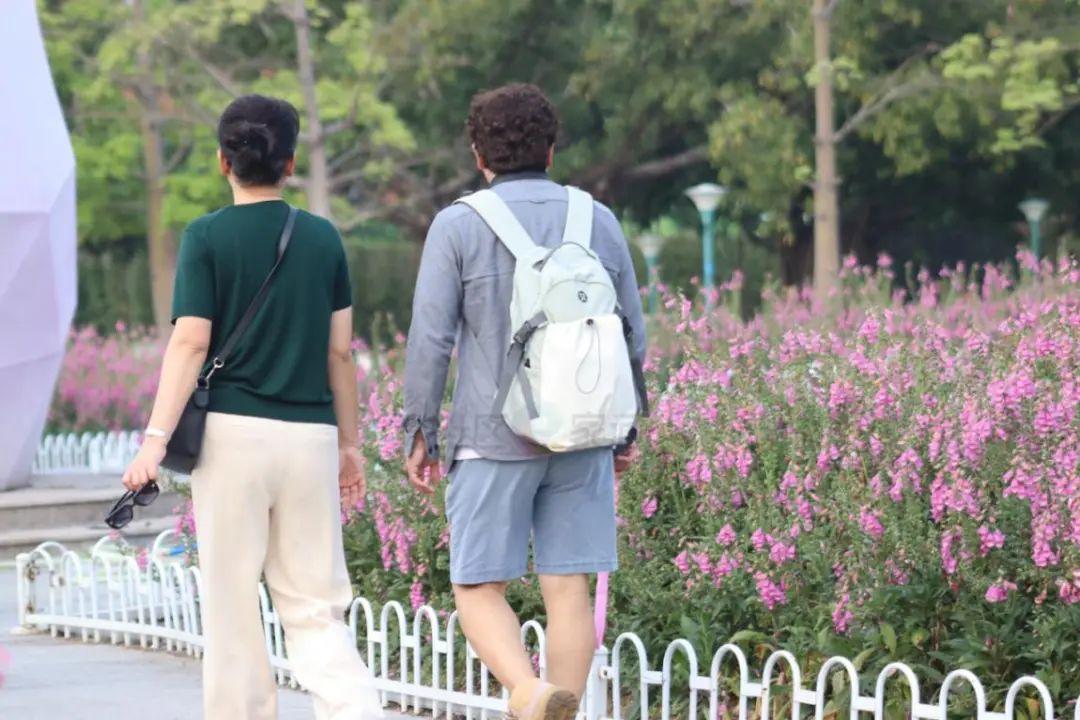 晴朗天气里,市民游客来到宏城公园,漫步在鲜花簇拥的小径上,陶醉于眼前的美景当中。