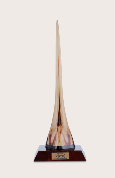 那么,你要看看这个鱼嘴骨。这个来自毛里求斯海中的蓝马林鱼,和老渔夫带回去震惊众人的那具巨大白色鱼骨架,有着同样尖尖的鱼嘴骨。如今,它也被摆放在这个私人博物馆里,讲述着与命运搏击的故事。