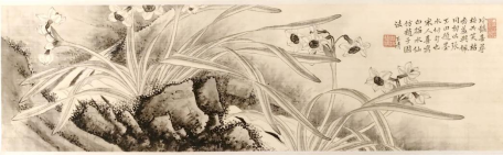 广州图书馆藏《冼玉清先生水仙图卷》,收录了水仙花作品三祯。(胡霄摄)