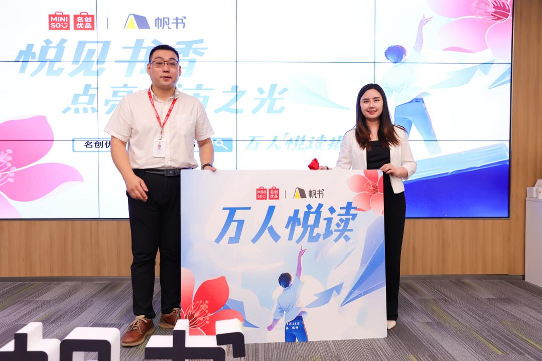 名创优品联合知识推广头部企业帆书,共同提出“开心悦读·开心成长”的倡议书,积极向员工、向社会传递“开心阅读、终身成长”理念,倡导培养终身阅读、优质阅读、学以致用的良好生活方式,以知识涵养提升个人价值。
