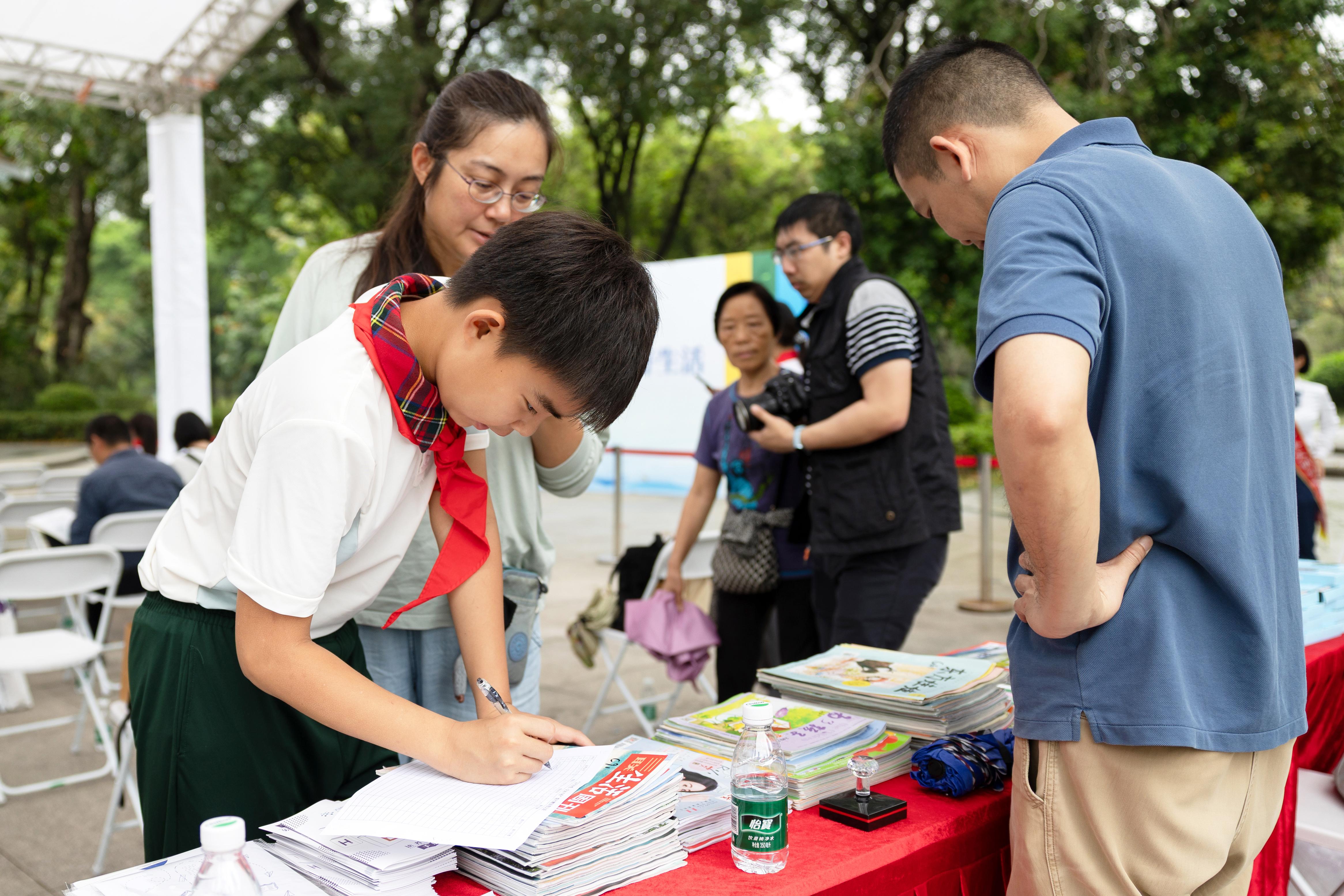 “我们全家都很喜欢阅读,家里最大的财富就是四面墙的书柜。我也很喜欢做公益服务,成为‘小馆长’为同学们推荐合适的书籍,带动越来越多的同学走进图书馆、爱上阅读。”天河区华景小学的“最佳小馆长”代表分享了自己担任小馆长期间的成长感悟,讲述阅读与志愿服务带来的双重收获。