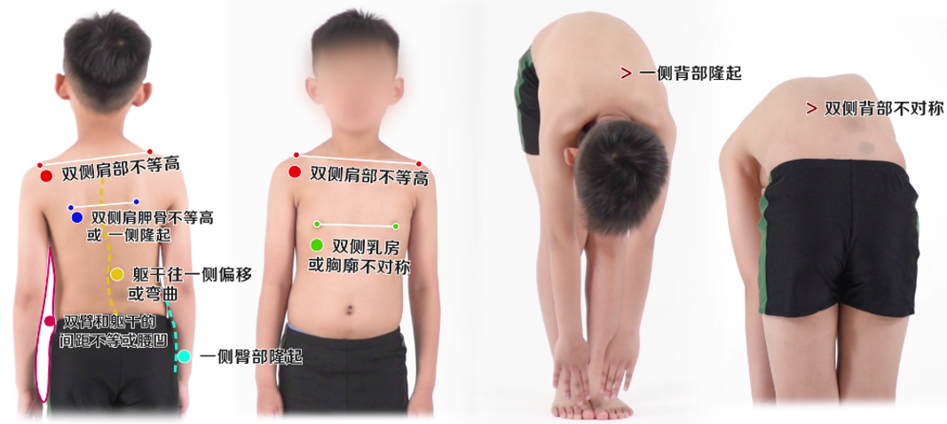 二是家长要重视定期给孩子排查脊柱侧弯。从孩子6岁开始,家长可以让孩子脱掉上衣,一月一次自查,检查时分“四步走”: