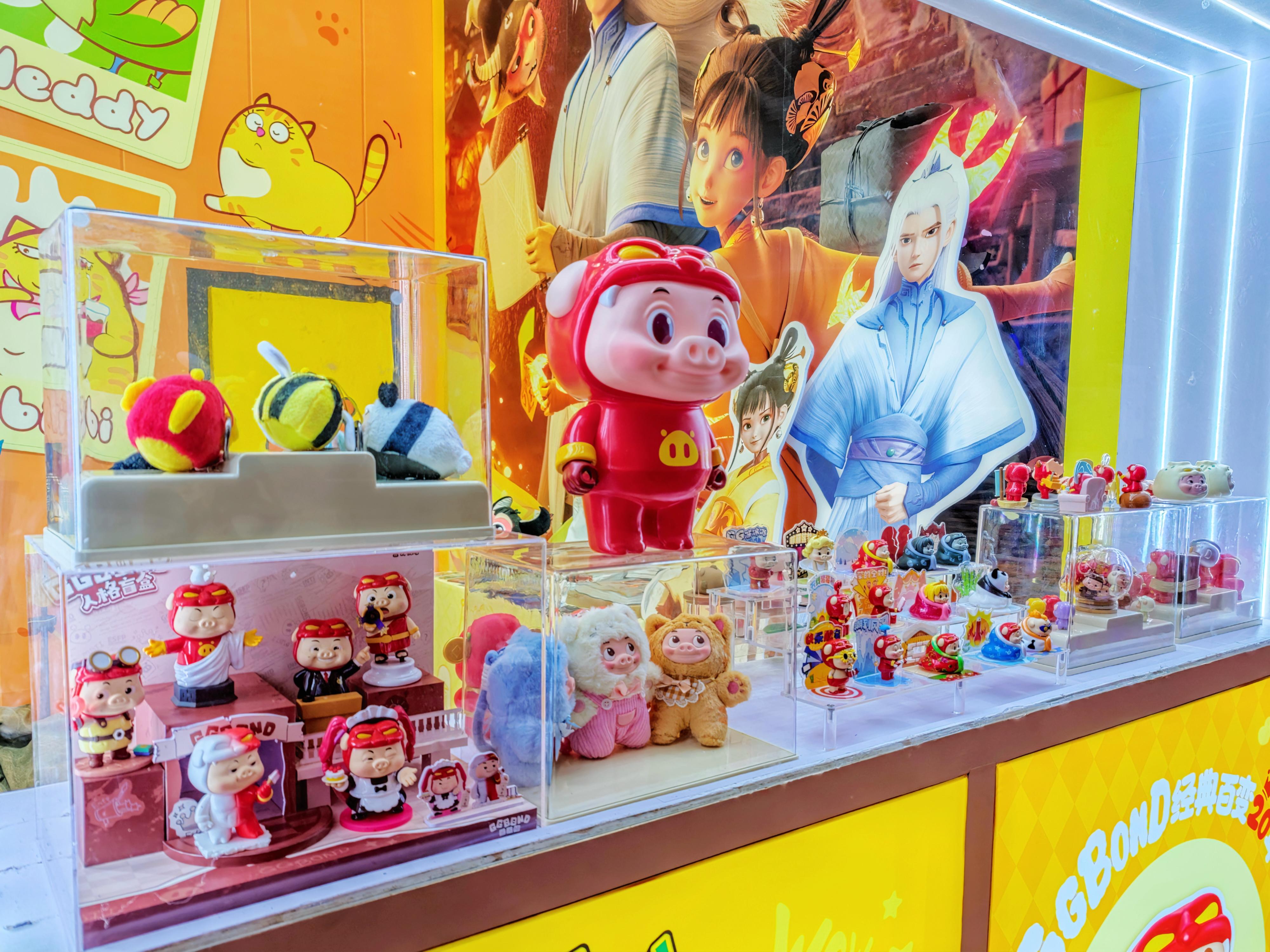 记者了解到,近年来以“猪猪侠” IP 为核心打造的潮玩矩阵,正以强劲势头席卷年轻消费市场。GGBOND十六型人格盲盒、“猪猪侠”经典盲盒、“猪猪侠”猪咕粒萌粒、猪咪毛绒盲盒等产品精准击中职场青年的情感需求。这种“内容+产品+场景”的全链路运营,不仅将IP从屏幕延伸至生活场景,更通过快闪店、主题特展等线下体验,构建起年轻人的情感共同体。