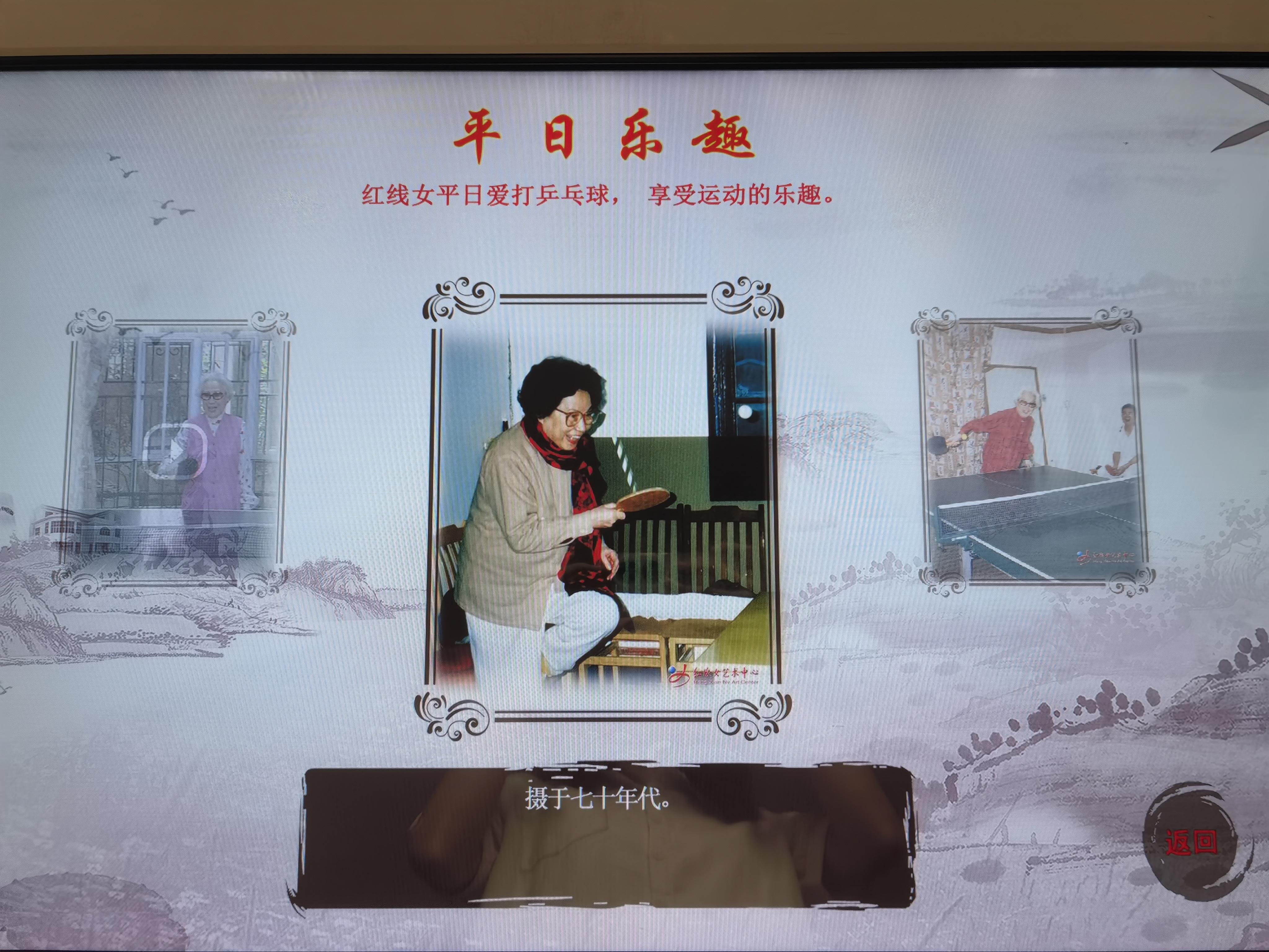 此次展览设置在红线女旧居一层的练功室内。红线女艺术中心主任蒙菁表示,红线女在生活中很热爱运动,尤其喜欢打乒乓球,在家中练功室精心布置了乒乓球桌,经常组织亲友打家庭比赛,每逢重大体育盛会,她也都以满腔热血积极参与。