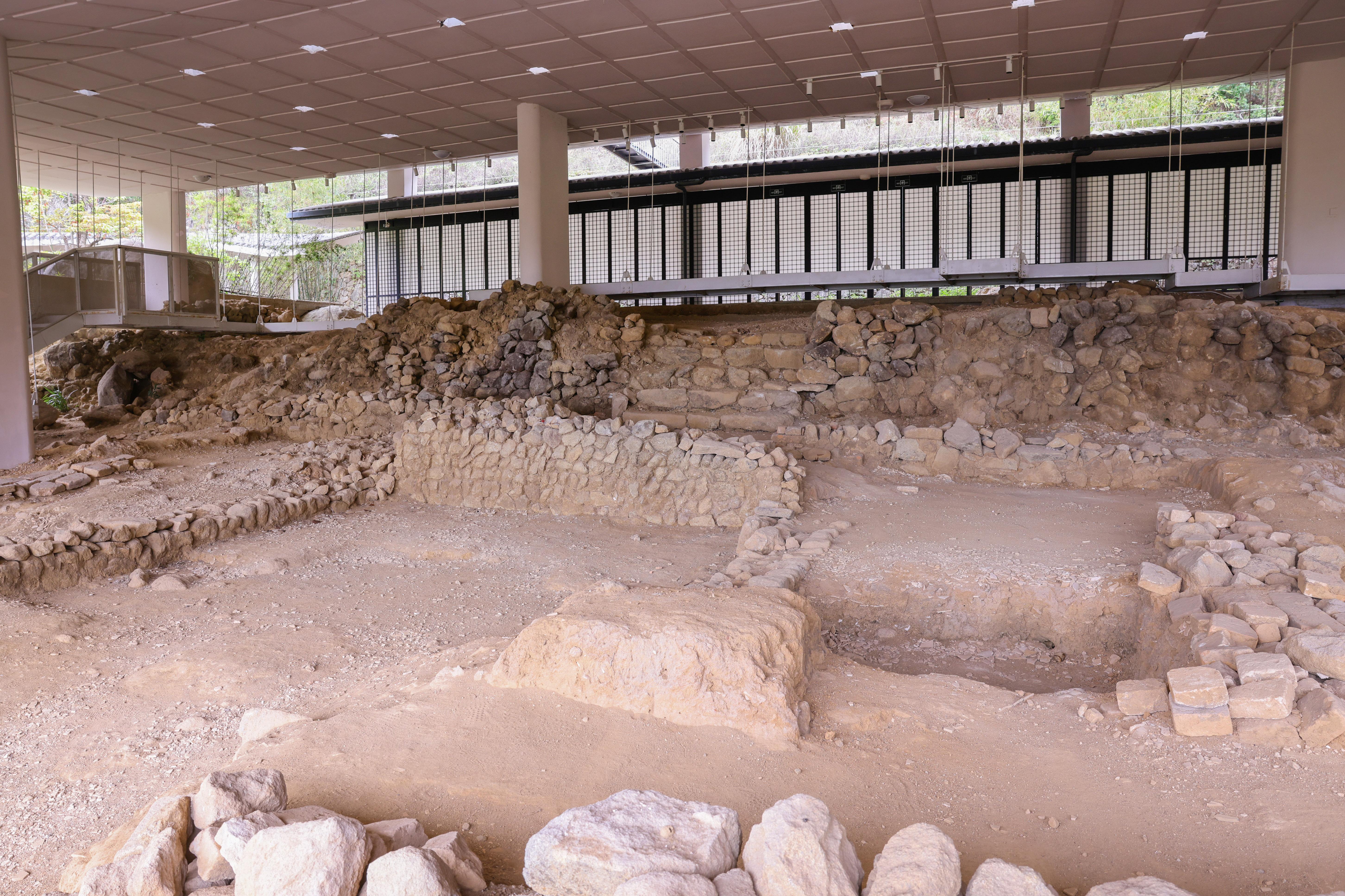 经过湛子洞继续往上攀登,就能看到莲花书院遗址了。书院依山势而建,建筑基址分布在人工堆填的五级平台上。
