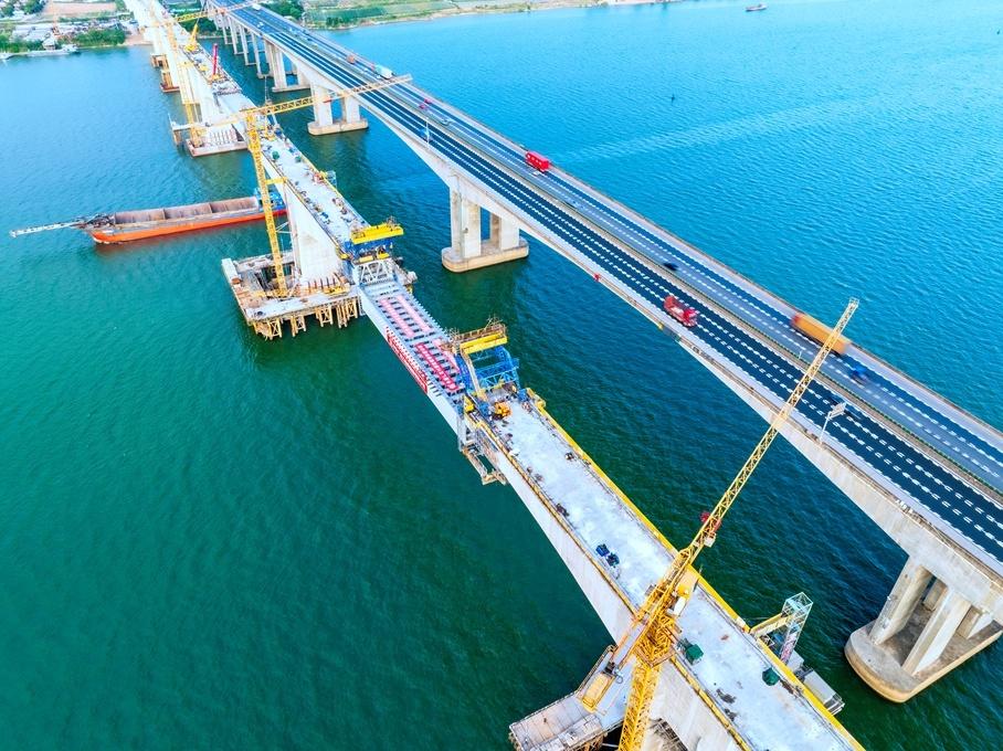 【同类型桥梁世界最大!广湛高铁跨西江桥合龙应用多项创新工艺】日前,广湛高铁佛山特大桥跨西江钢混混合连续刚构桥顺利实现合龙,该桥的孔跨布置为(109+200+200+109)m,建成后将是世界最大跨度时速350公里无砟轨道钢混混合连续刚构桥。查看详情>>