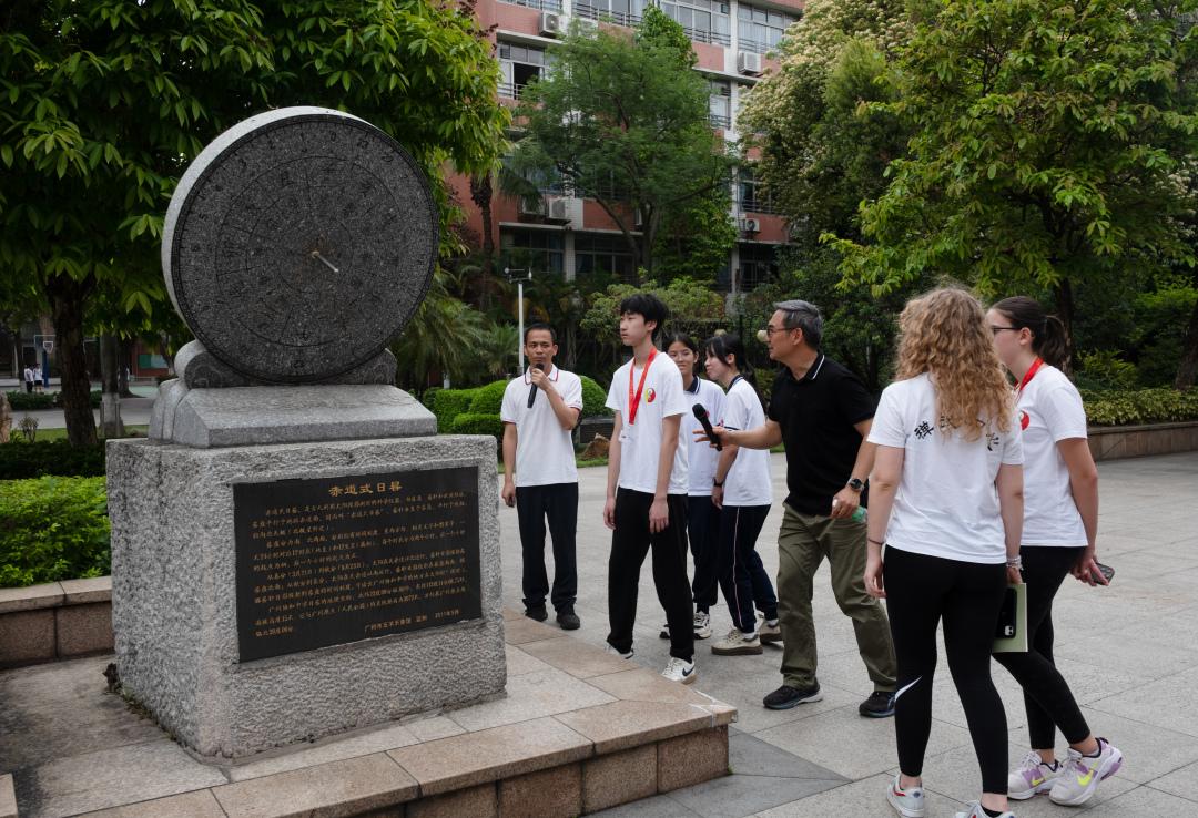 值得一提的是,广州协和学校还准备了一节课——《探索中国古代的智慧——日晷》。在该校的时间广场,中匈两国学生坐在一起,同上一节课,一起探索、了解日晷的工作原理。在老师的指导下,两国的同学们还在该校时间广场上的日晷旁,一边看着、触摸着实物,一边聆听老师的讲解。