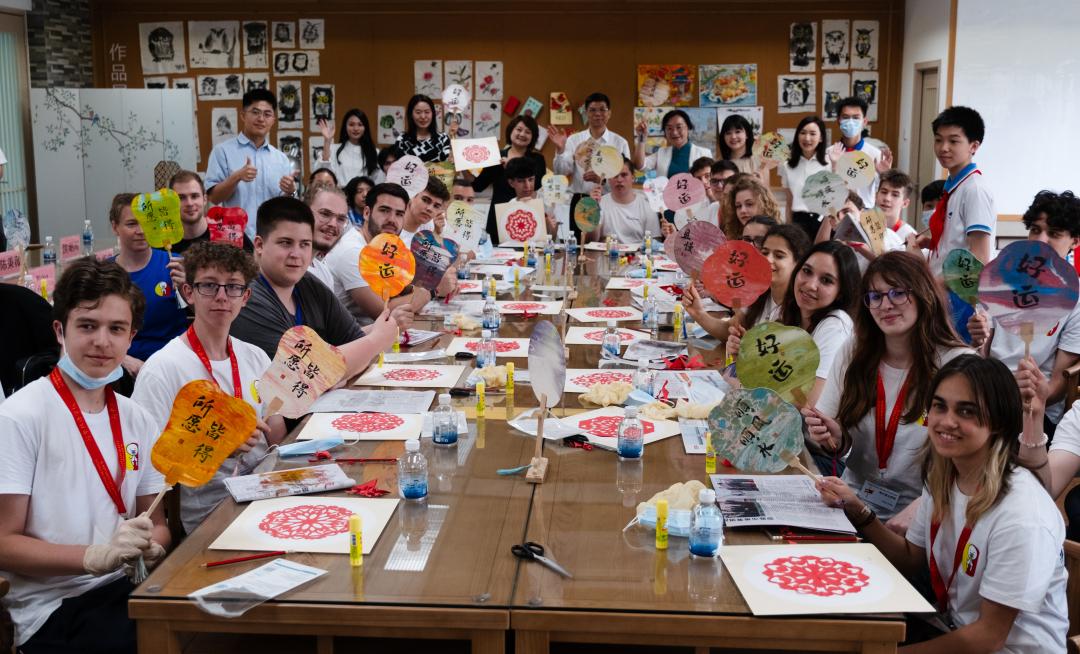 在广州六中:中匈青少年一起剪纸、制作漆扇