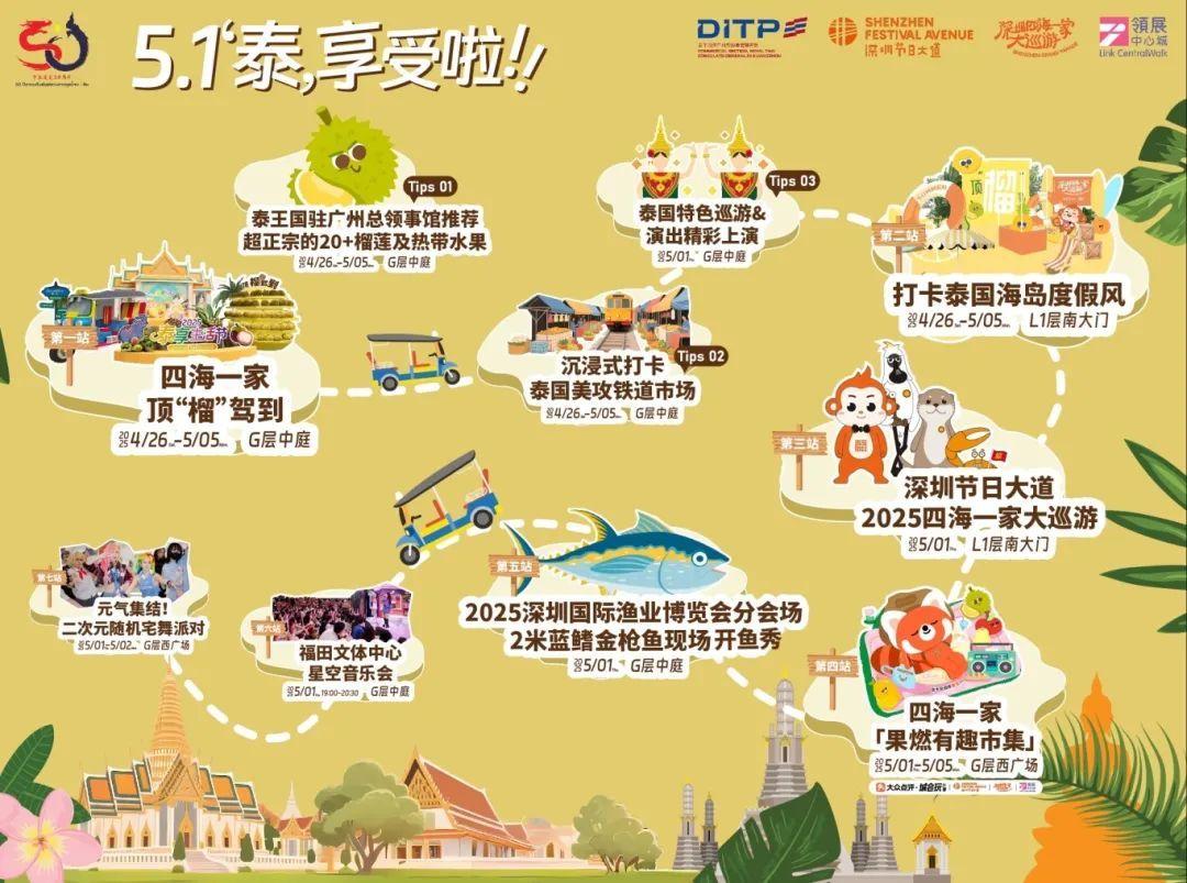 泰享生活节暨泰国水果嘉年华,由深圳领展中心城与泰王国驻广州总领事馆商务处联合打造,以“四海一家 顶‘榴’驾到”为主题,集结泰国顶级榴莲、热带水果、文化体验及国际渔业盛典,打造一场横跨美食、文旅与艺术的东南亚风情盛宴,为深圳市民开启“不出国门,畅玩泰国”的假日狂欢!