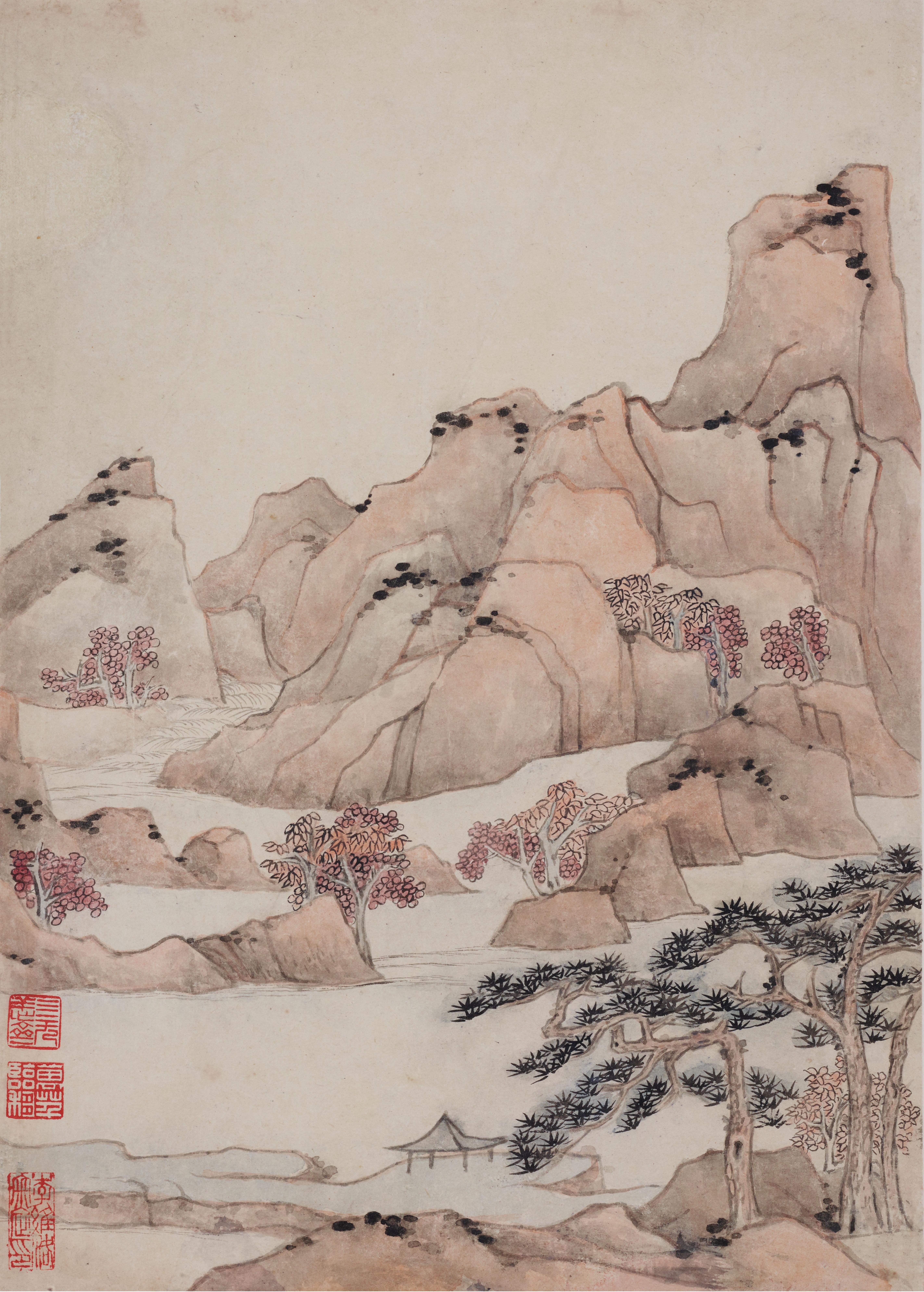 《仿明人山水图册》之一 黄般若 20世纪20-40年代作 纸本设色 28×20.5cm 黄大成先生、黄大德先生捐赠 广州艺术博物院藏