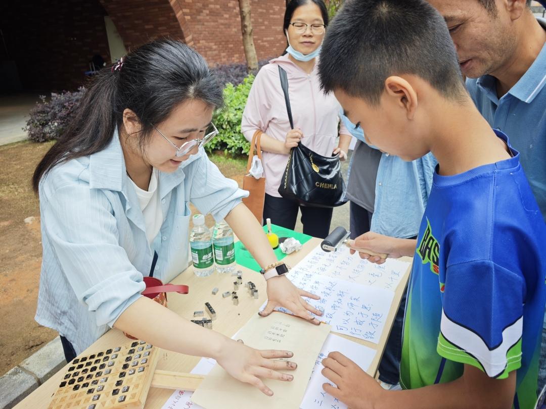 参观学生体验活字印刷。