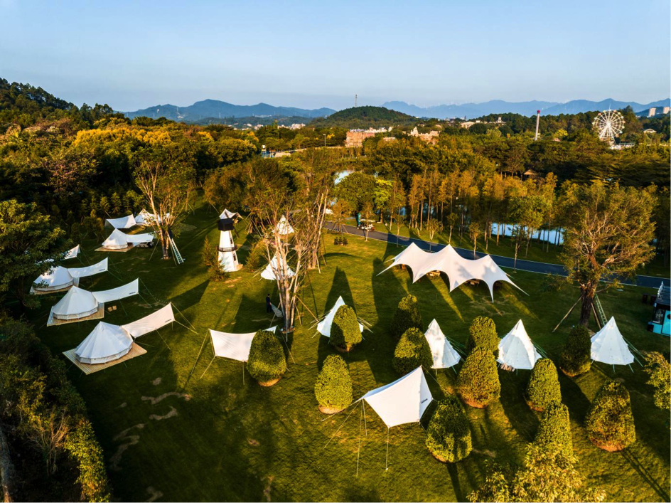 本次草坪音乐会将会以经典粤语、儿歌表演为主,注并在现场植入泡泡秀、足球射门、漆扇DIY、儿童面部彩绘、射飞镖等亲子互动活动。音乐会每天四场,从每天下午两点延续到晚上九点。同时,在草坪音乐会现场,还配套有精致露营、烧烤美食,游客们徜徉在草地上,美食当前,音乐伴耳,帐篷为营,萌宠相伴,或与家人畅谈说笑,或与朋友把酒言欢,将疲惫的身心交由大自然疗愈,以轻松的方式解锁度假日常,“野趣”满满。