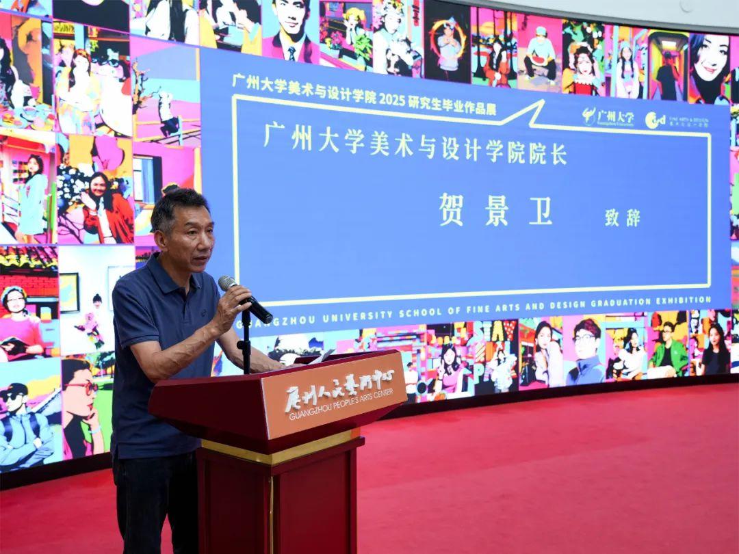 广州大学美术与设计学院院长贺景卫介绍,本次展览汇集了66位同学的多元作品,展示了研究生在传统与现代、艺术与科技领域中的探索与创新,他鼓励研究生们扎根生活、勇于创新,并希望能够为培养新一代艺术家贡献力量。