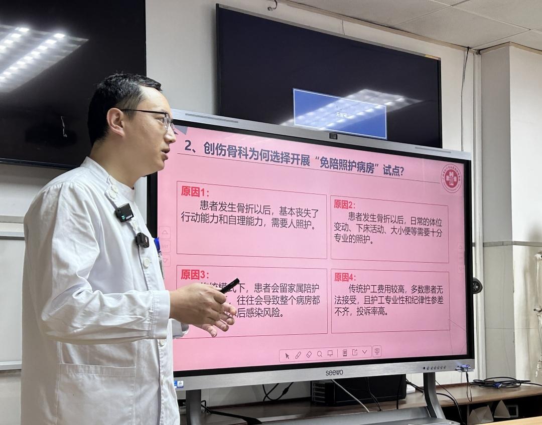 广州市红十字会医院创伤骨科、中医正骨科护士长王珂介绍,患者发生骨折后,基本丧失了行动能力和自理能力,需要人照护。传统模式下,患者会留家属陪护或自请护工,往往会导致整个病房都是人,增加术后感染风险。而且传统护工费用较高,多数患者无法接受,且护工专业性和纪律性参差不齐,投诉率高。而免陪护照护不仅可以提供生活照护,如洗簌、喂食、如厕、翻身,专业护理:协助患者康复训练、病情检测,陪患者外出检查,另外还可以帮助订餐、心理疏导,和家属沟通协调等,不仅解放了家属,而且护理质量更高,能够更好地满足患者的需求,给患者提供更加舒适、安静的治疗环境,有助于提高患者的治疗体验和满意度。