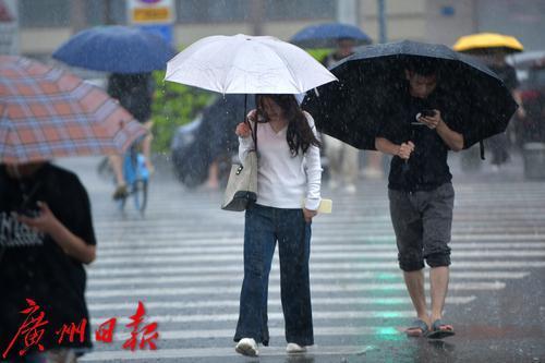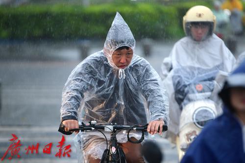 5月9日早上,广州多区发布暴雨和雷雨大风黄色预警。上午8:30左右,天河区东圃上空乌云密布,不多时大雨倾盆而下,上班的市民纷纷冒雨出行。
