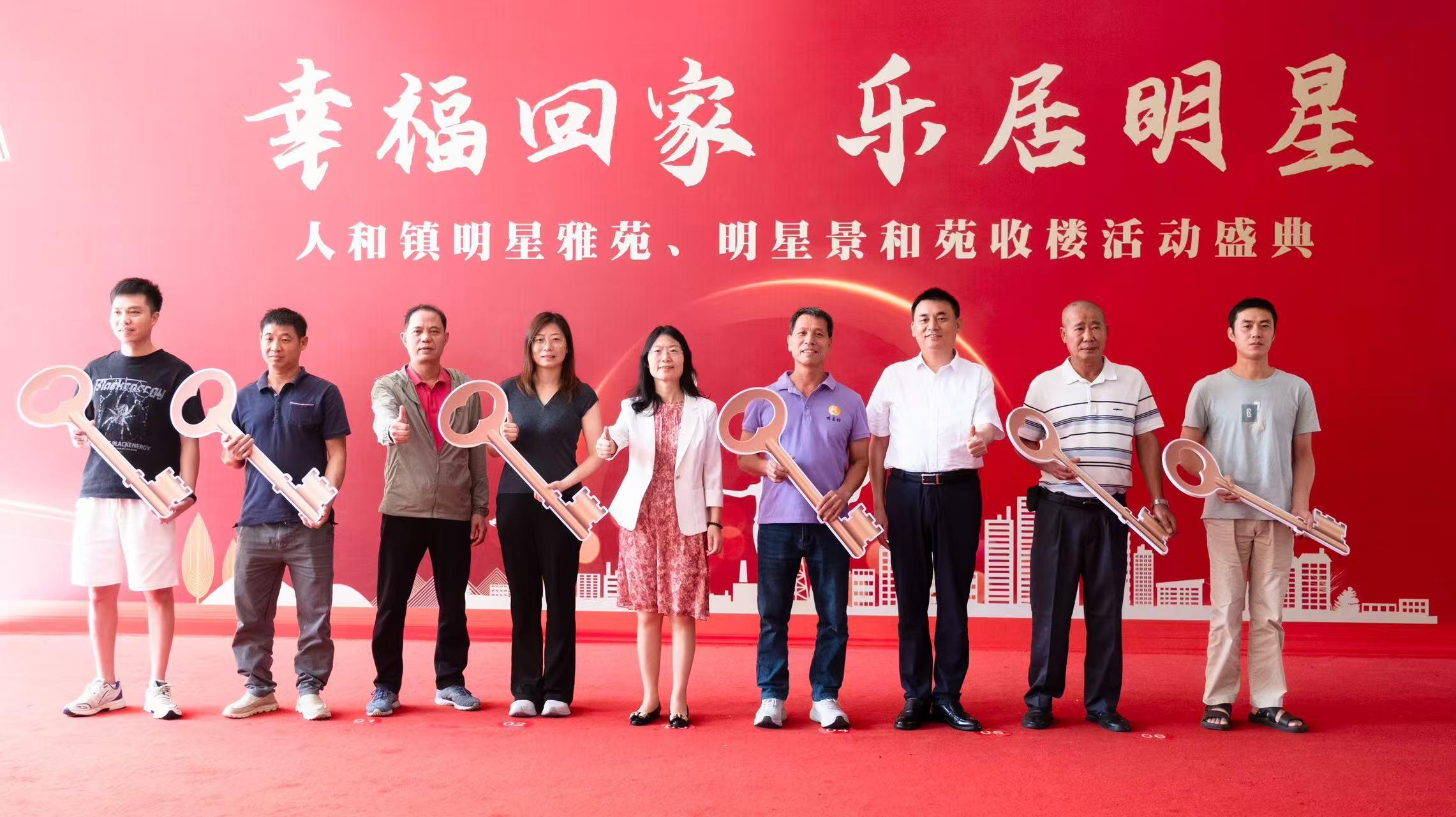 5月11日上午,广州市白云区人和镇“广州白云国际机场扩建工程噪音区治理”白云区治理项目安置房(以下简称“明星村”安置房)交楼仪式,在明星雅苑及明星景和苑小区举行,4226 套全新安置房正式交付,又一批明星村村民迎来设施完善、环境优美的新家园。不少村民笑着表示,今年中秋节。就可以在新家的阳台上食月饼、赏明月了。