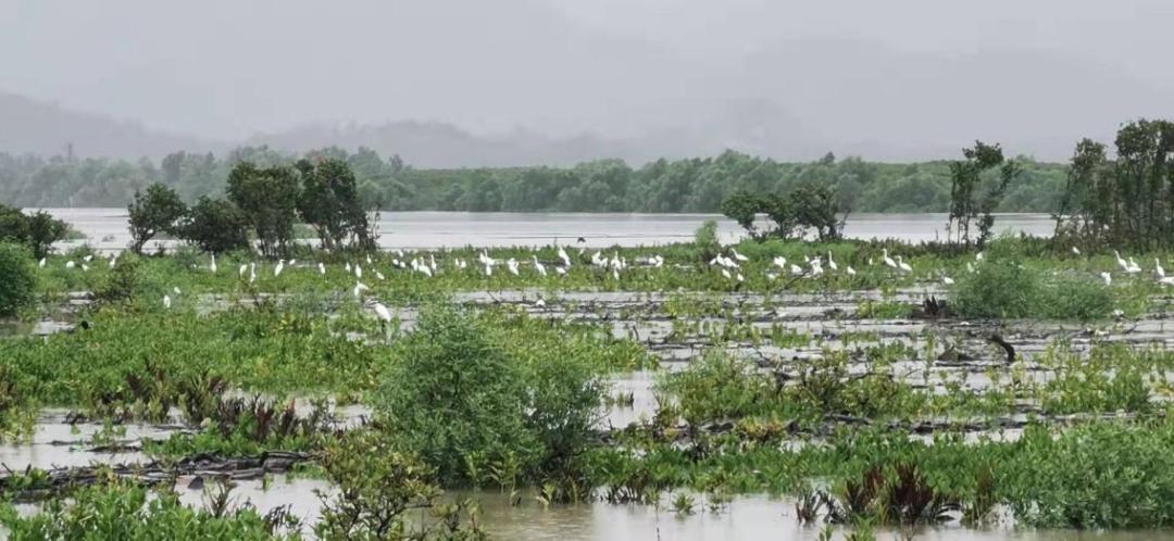 (公园生态控制区无瓣海桑清除后,高水位时会有很多鹭科鸟类停歇于此)