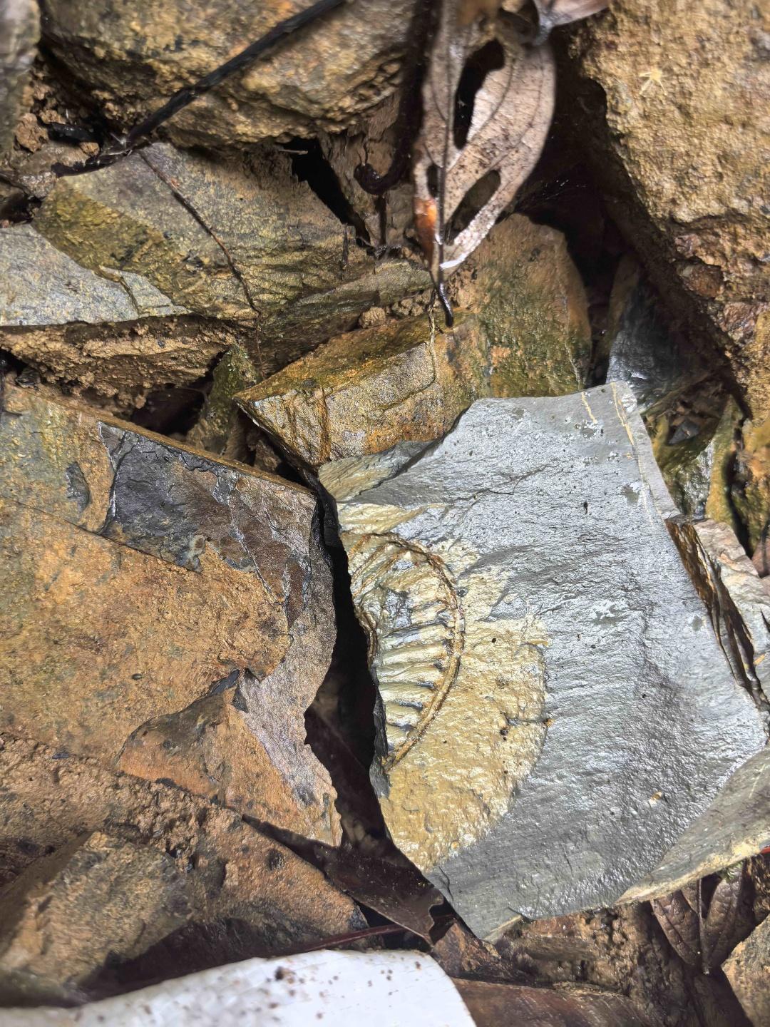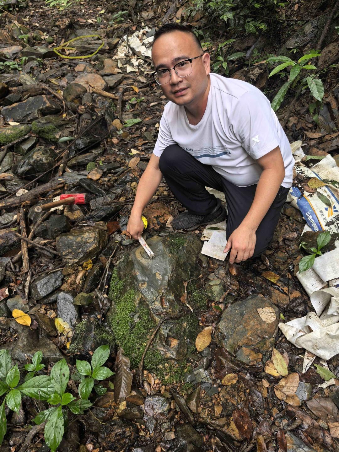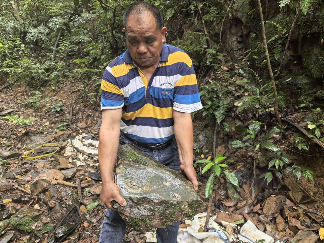 在发现菊石化石后,赖达威当天因巡山时未携带搬运工具,便迅速返回增坑村委会,向当地村干部详细汇报了这一重要发现。当地村干部高度重视,立刻安排部署相关保护工作,近日(5月7日午后12时)由村委会副书记赖伟强与村委会副主任赖达威一同驱车前往化石发现地。经过仔细查看并在现场采取妥善保护措施后,当天下午15时,3人冒雨成功将这块完整的菊石化石搬运回增坑村委会。