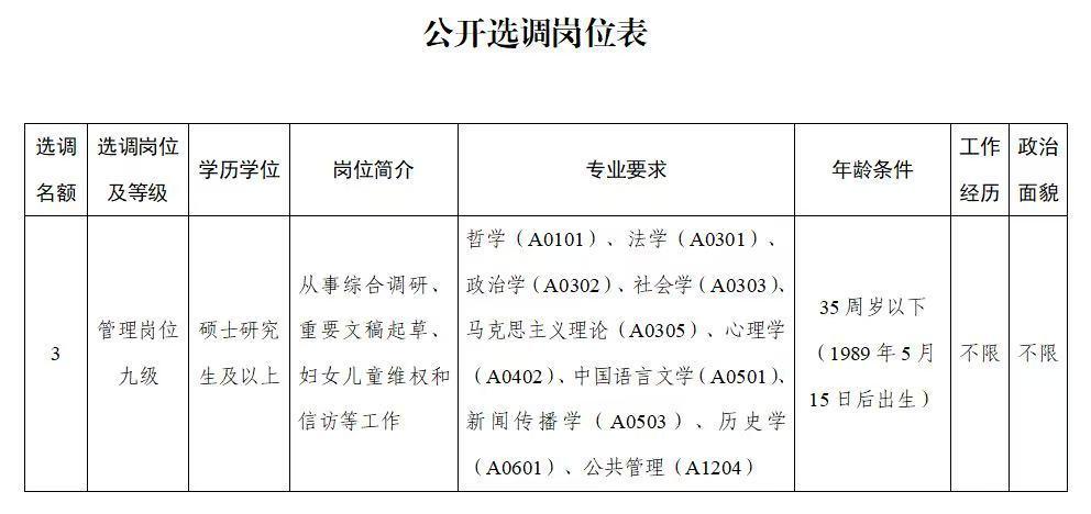 广东省妇女联合会直属事业单位2025年公开选调人员公告: