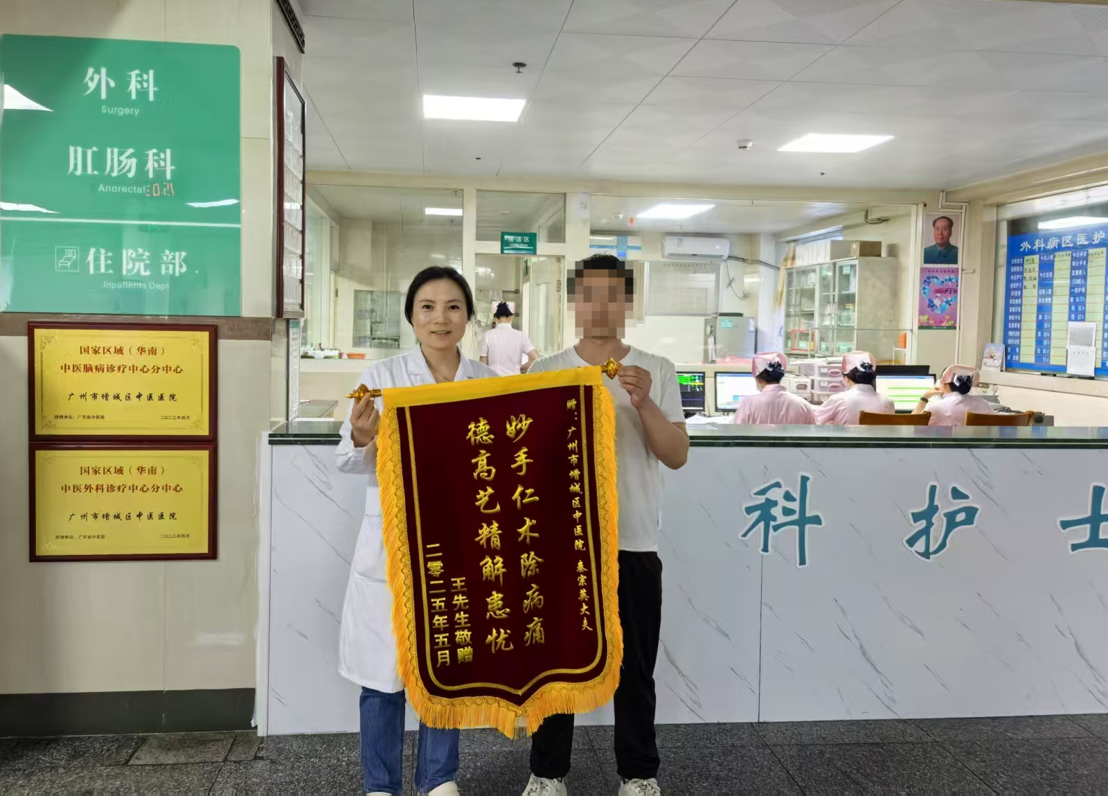 信息时报讯(记者 曾文秀 通讯员 郭翠萍)还未诊治就先送锦旗?近日,广州市增城区中医医院肛肠科副主任医师秦宗英,收到了来自江苏的王先生跨越千里亲自送来的锦旗。2天后,秦宗英亲自操刀手术,解决了困扰王先生数月的肛肠疼痛问题。这背后有着什么样的故事呢?