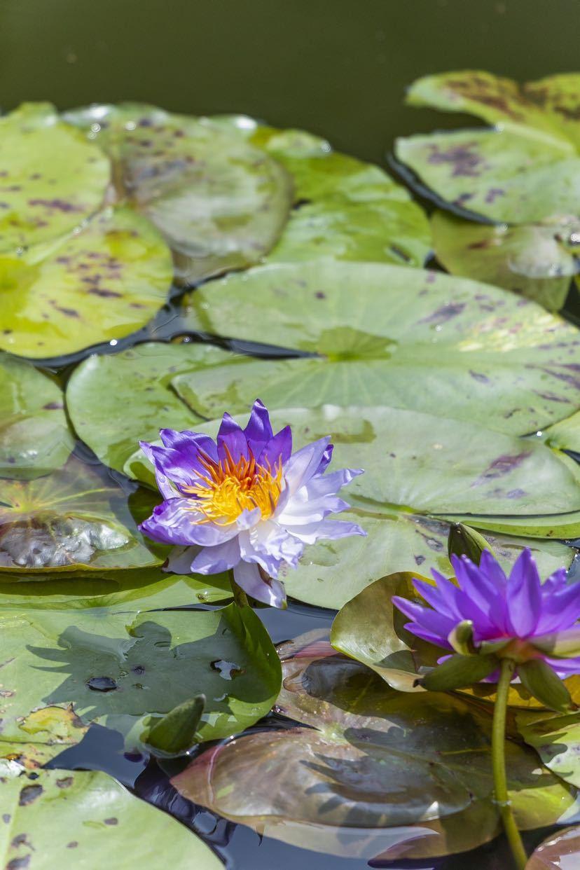 此次发现的双色睡莲,品种名为“咏叹调”。该朵双色莲花瓣色泽优雅,一半呈淡蓝色,另一半则呈现出深邃神秘的紫罗兰色调;花心颜色也别具一格,以黄色与绚丽的橙红色并存。整朵花宛如一幅天然晕染的水彩画。