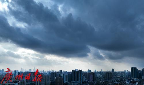 广州城区上空一度出现大片乌云。