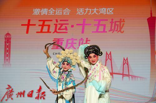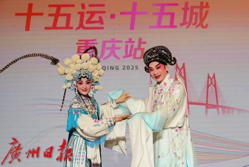 活动在粤剧与川剧的创意碰撞中拉开序幕,以传统戏曲对话,演绎穗渝文化交融之美。 重庆街舞联盟带来活力四射的《舞动山城》,广东省木偶艺术剧院以杖头木偶《花月韵》展现岭南非遗魅力。粤港澳志愿者通过节目互动,传递“全民全运”理念。活动还特别设置穗渝领导互赠礼物环节,两地宣传系统领导互换象征两地情谊的“广州礼物”与重庆特色纪念品。 此外,广州酒家总经理赵利平结合全运主题推介粤式美食,歌手吴欢、田延友献唱《全运走四方》,吉祥物人偶与观众热情互动,现场掌声不断。