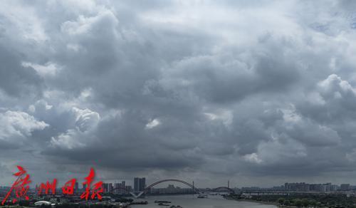 5月16日上午,雷阵雨来临之前,广州城区的天空风起云涌。