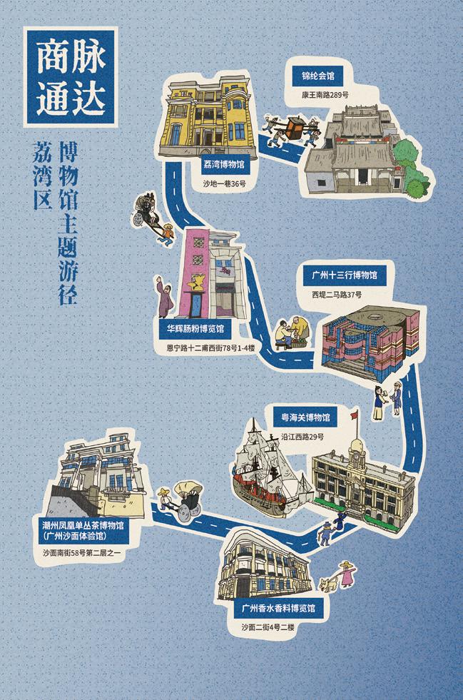 锦纶会馆——荔湾博物馆——华辉肠粉博览馆——广州十三行博物馆——粤海关博物馆——广州香水香料博览馆——潮州凤凰单丛茶博物馆(广州沙面体验馆)
