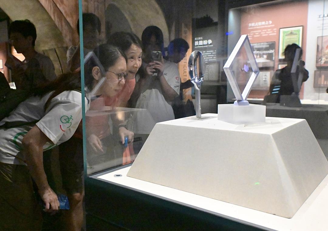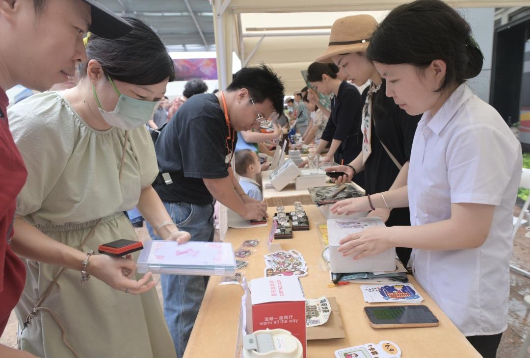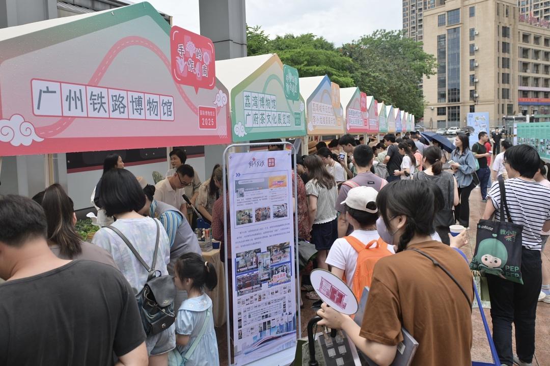 当天的活动现场还设置博物馆文化展示长廊,各场馆的特色主题在这里可一览无余。“手作岭南”互动区集合了各馆精心设计的体验活动,陈家祠的门神涂色、十三行博物馆的通草画绘制、荔湾博物馆的趟栊门扇面拓印、广州铁路博物馆的奶茶试做体验、锦纶会馆的时节香囊和采芝林中药文化展览馆的艾条制作等,吸引了观众热情参与。文创展销区汇聚了一些场馆的文创产品,趟栊门木雕摆件、红色工甲主题冰箱贴、永庆有喜玻璃杯、72家房客联名钥匙扣等,让观众在方寸间感受历史与生活的连接。