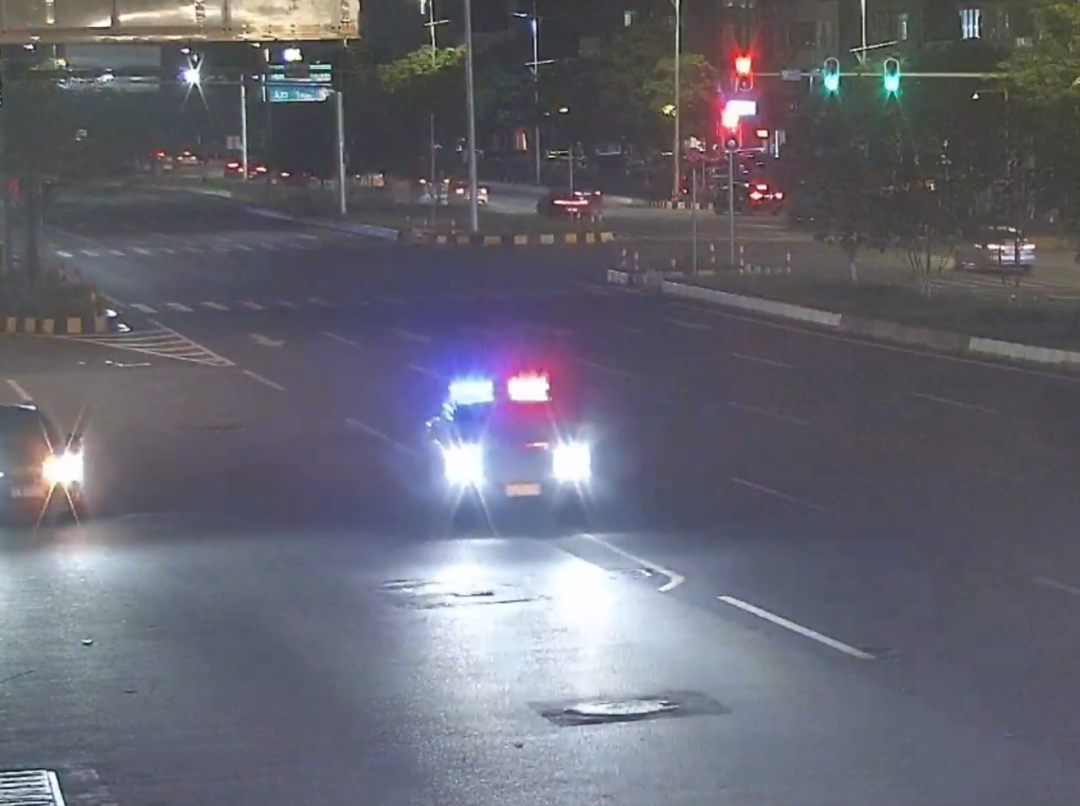 “分控中心,这里是中新交警中队傅心发,现正紧急护送一名高烧幼儿到妇女儿童中心进行救治,请帮忙开启生命绿波通道。”傅心发一边呼叫交警大队分控中心请求援助,另一边亮起警灯拉响警报,带领方女士和孩子所乘坐的车辆向着医院方向驶去。