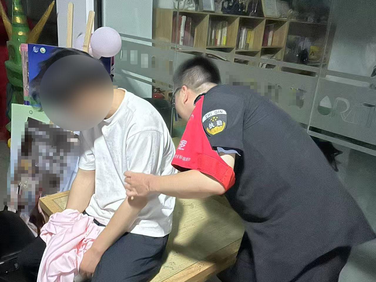 为了让男子尽快恢复清醒,金少威从巡逻车上拿来温水,喂男子喝下,黄景荣则安抚稳定男子情绪。待男子意识逐渐恢复后,二人经询问得知,该男子刚参加完公司聚餐,在准备离开时,酒劲突然发作,一时不支便躺倒在地。考虑到男子身体状况,队员们决定将其送回住处。当询问住址时,男子表示上班的地方就在附近,于是,金少威和黄景荣搀扶男子缓慢前行。