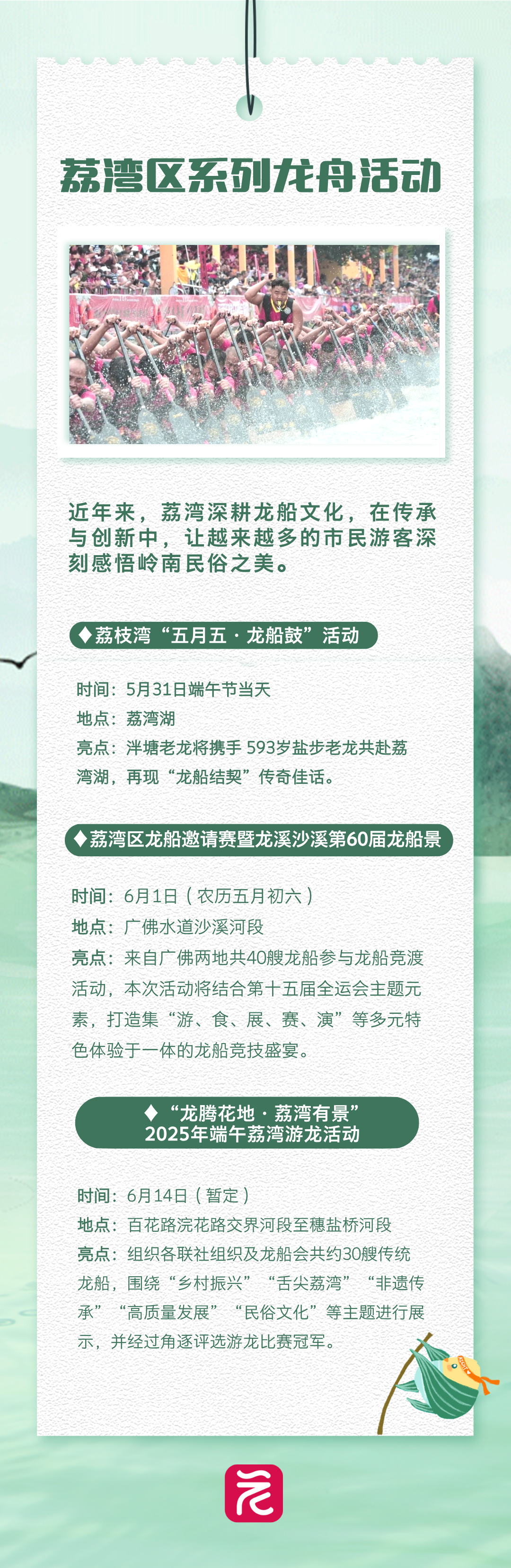 目前,广州各地的2025年龙舟赛事安排已陆续公布,部分赛事正如火如荼开展中,我们搜集了最新的龙舟赛事资讯,整理出“2025广州端午节龙舟系列活动汇总”,一起来看看吧。