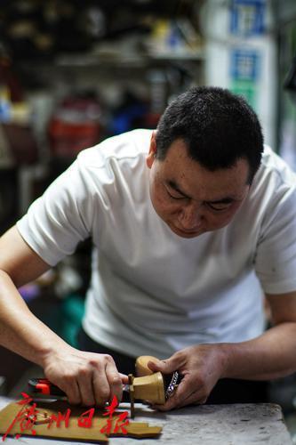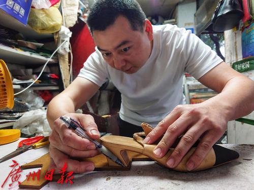 2002年,他来到越秀区达道路,在这里开了一家属于自己的修鞋店,一干就是23年。