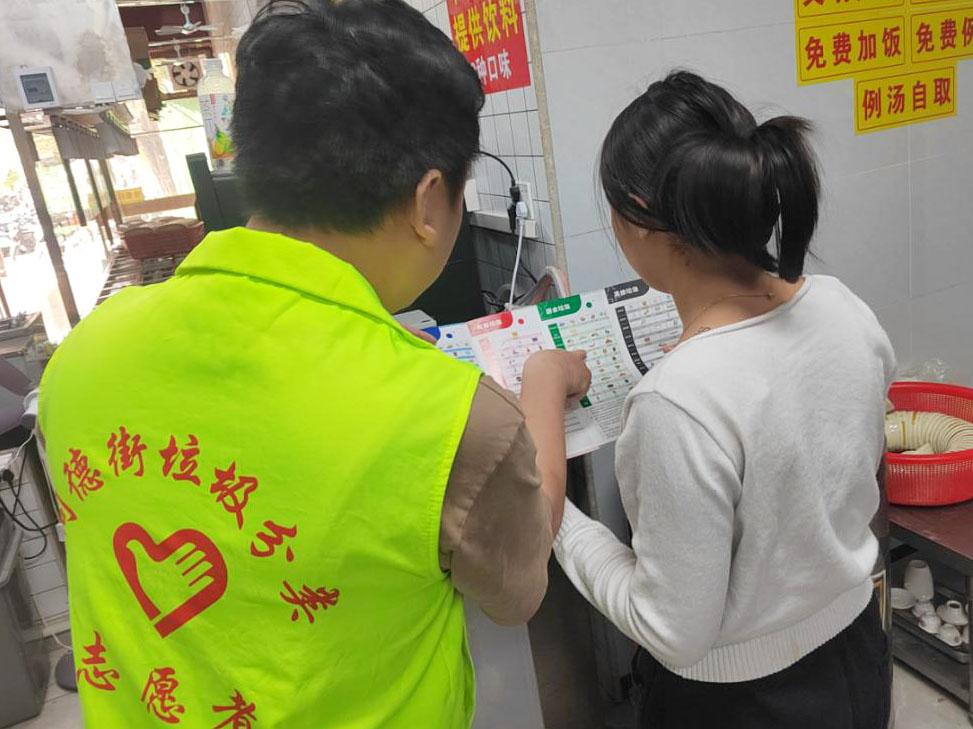 志愿者向商户宣传垃圾分类知识。通讯员供图