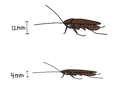 北方地区更为常见的体型小(1~2厘米)、浅棕色的小蟑螂,多为德国小蠊。