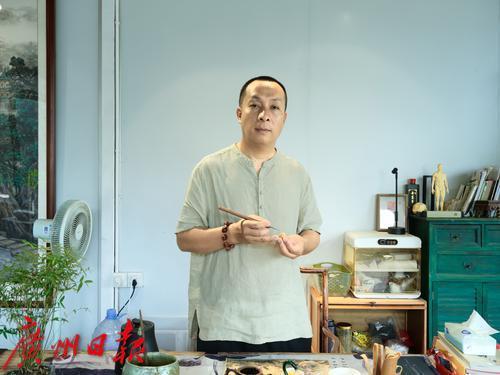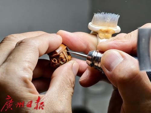入驻番禺大岭村的核雕非遗代表性传承人彭德平。