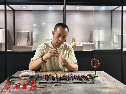 入驻番禺大岭村的核雕匠人彭德平。