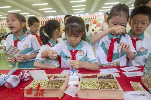 5月29日,在“六一”儿童节前夕,“岐黄育心,科创同行”中医药文化进校园启动仪式在体育东路小学举行。在科创节嘉年华中,体育东路小学的学生们以中医药文化为主题,开展了六大阶梯式主题探究活动——“童探汤趣”“节养共生”“广府味典”“汤问探秘”“数绘穗迹”“本草绘签”。通过科技发明、手工制作、养生美食等多种形式的展示,孩子们不仅展现了中医药文化的学习成果,还让千年岐黄智慧在现代科技的助力下焕发新生。