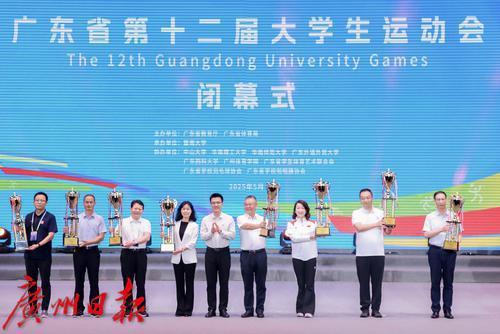 5月29日下午,广东省第十二届大学生运动会(以下简称“省大运会”)闭幕式在暨南大学举行。本届省大运会中,暨南大学共斩获60枚金牌、36枚银牌、41枚铜牌,位列金牌榜第一,并包揽甲组、乙B组奖牌榜第一名。